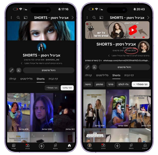 אביגיל ויסמן רק בת 11 וכבר הכוכבת הנעקבת ביותר בישראל לגילה. מיליארדי צפיות בארץ ובעולם ומאות אלפי עוקבים בעבודה של שנה אחת בלבד! השיגה עד היום תפקיד ראשי בסדרה, רווחים ממונטיזציה ביוטיוב וקמפיינים.